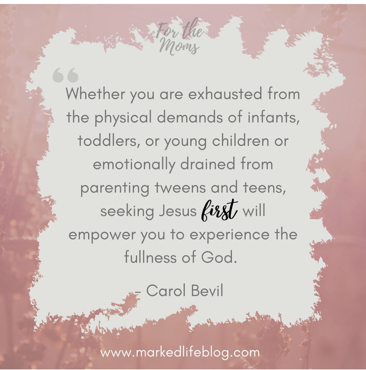 Guest Blogger: Marked Life Blog for the Bold & Brave Series https://markedlifeblog.com/2021/05/10/for-the-moms-bold-brave-with-carol-bevil/ LifestyleCarol BevilMay 10, 2021mom life; marriage tips; mom hacksComment Facebook0 Twitter Pinterest0 0 Likes