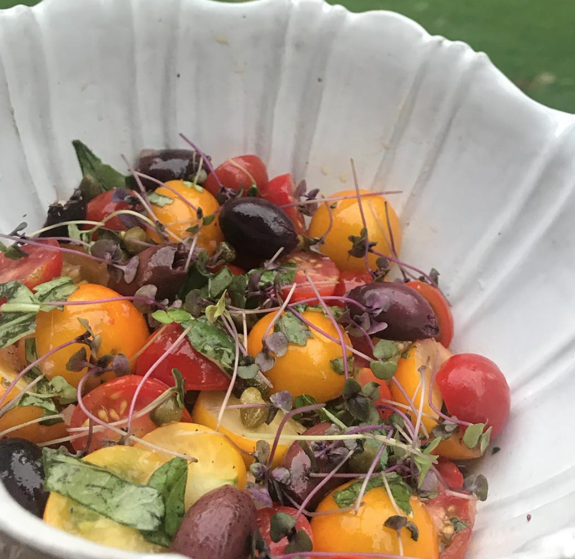 I am a sucker for the flavors in Niçoise salad. Classic, simplified, turned into a sandwich...doesn’t matter. Here is my summer lunch version, stripped down to a few essential flavors: Tomato Basil Niçoise salad. Tomatoes, basil (@owlshollowfarm), pitted olives, capers and basil microgreens (@ironcityorganics). Fresh, bright. Easy.