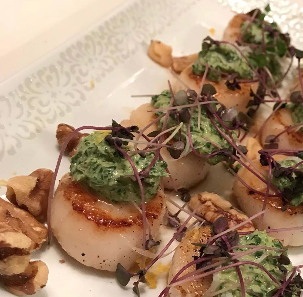 - Season scallops with salt & pepper.