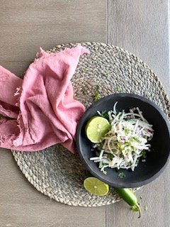 In a large mixing bowl, add all the veg (jicama through jalapeño).