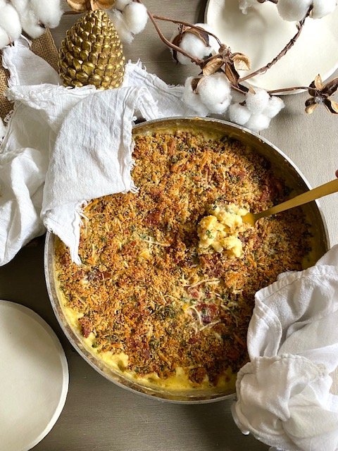 My mom makes the best Mac & Cheese. BUT….this one ain’t bad! Give my son credit for this recipe with just a few mom tweaks. Four cheese, bacon, creamy goodness in a skillet. Best part. Make ahead for a crazy busy night or to have on hand to feed the troops throughout the week. Recipe is a bit fussy for me, but super easy!