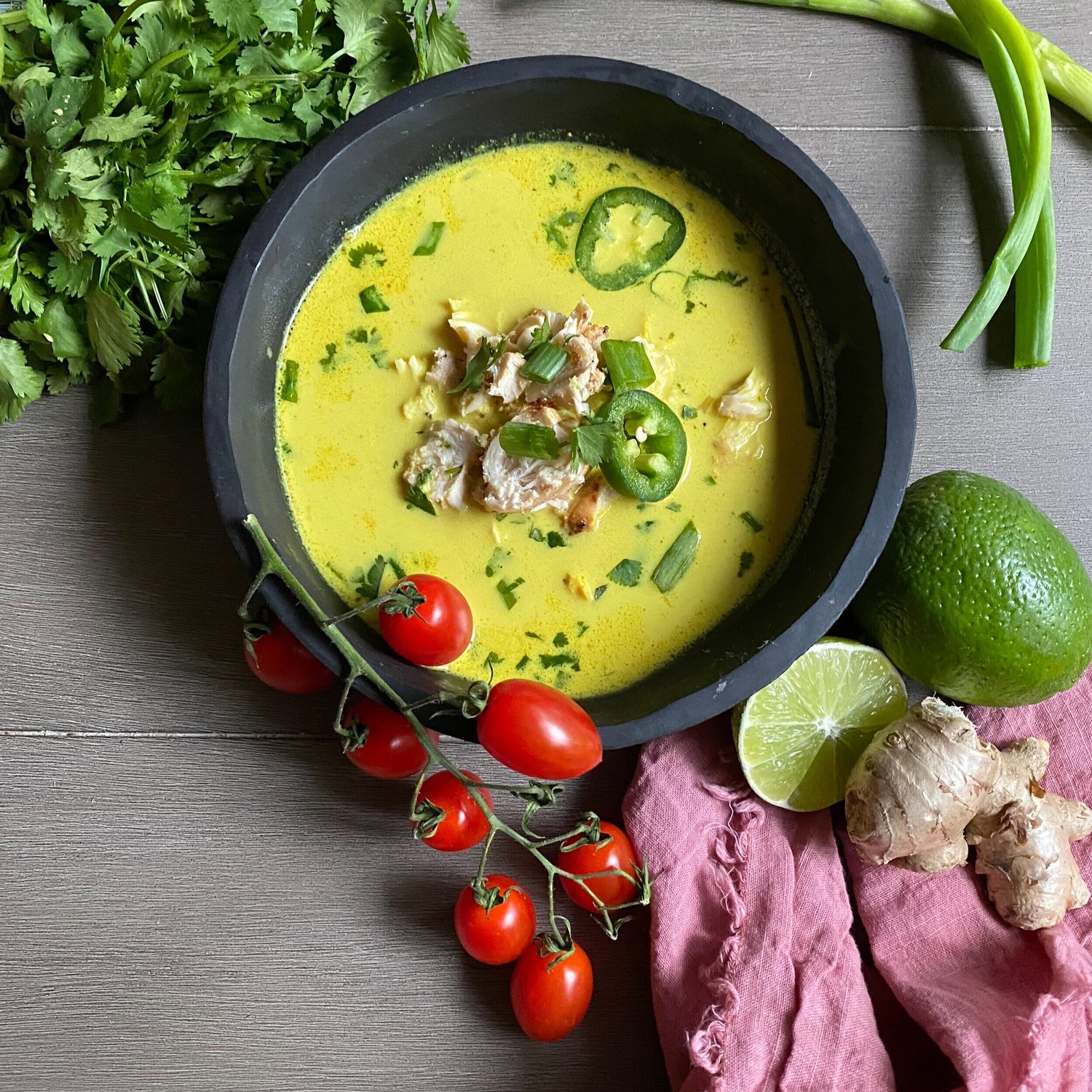 I love Tom Kha, but I never have the ingredients on hand to make it so…. after experimenting, this is my much easier spin. Is it Tom Kha? Nope. Is it flavorful, bright, and absolutely wonderful. YES! I don’t like a long scroll to get to a recipe (makes me nuts), but the base is the recipe. Let your imagination run wild—or leftovers dictate—what you add to it!