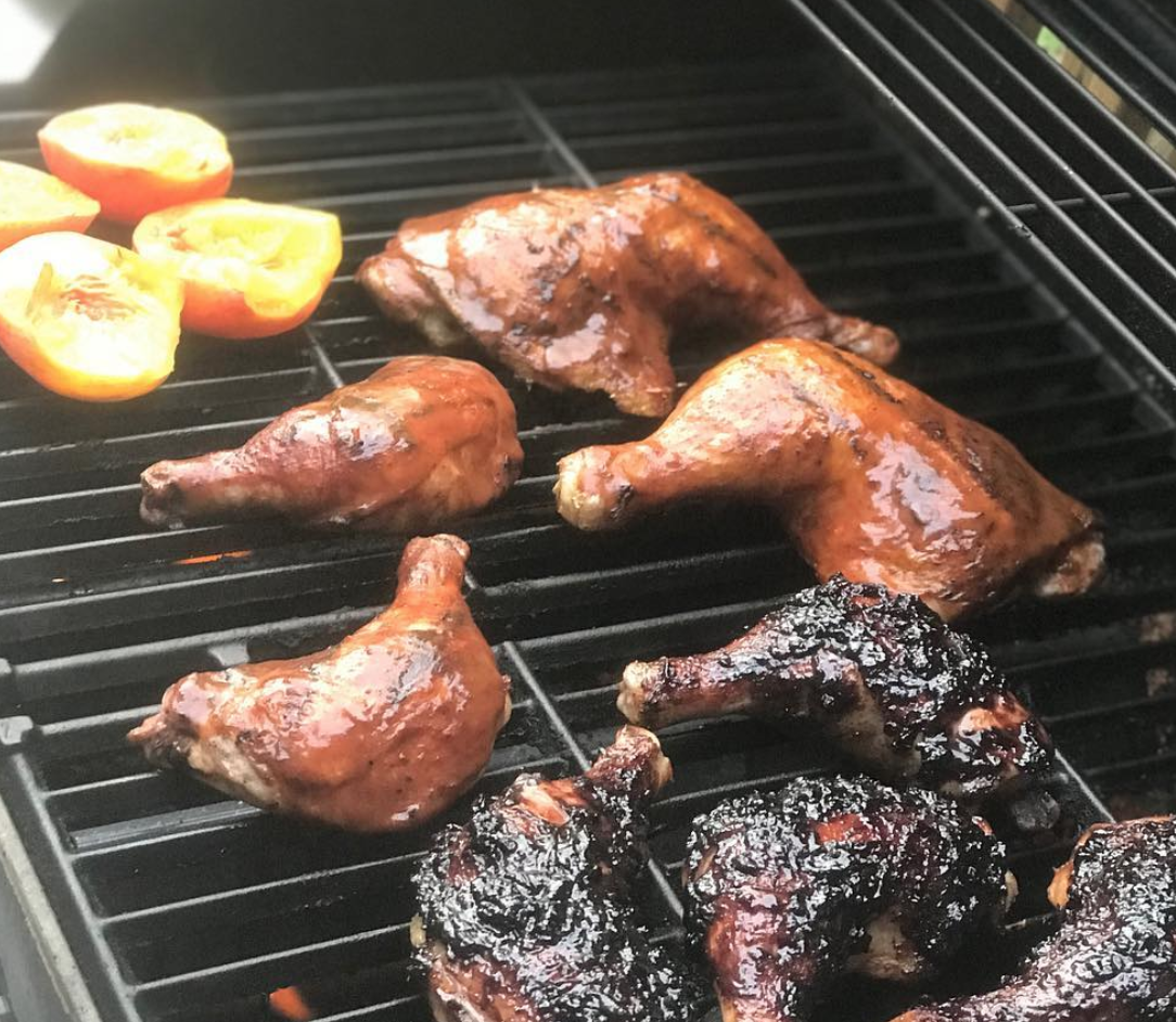 Grilled Blackberry & Peach BBQ Chicken Quarters