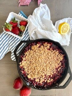 Summer fruit bursting with color and flavor is the best to have for grab and go snacking, but when my kids aren’t devouring it quick enough I find ways to put it to use. Often, its fresh jams or compotes for yogurt and pancakes. Sometimes, if I’m feeling like a super nice mom, I let everyone wake up to a fresh fruit crumble on a lazy weekend morning. Serve the crumble warm with fresh whipped cream anytime or with a scoop of ice cream for dessert.